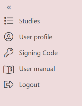 To access the Signing code page press `Signing Code` in the menu, where you can retrieve your signing code or generate a new one