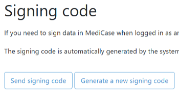 For some features of the MediCase eCRF and eTMF, e.g. signing eCRF forms and deleting eTMF documents, entering your password is required even when logged in. Since SSO user's passwords are managed by their organization, a signing code is used instead. The first time it is needed it will be generated and sent to your email. If you have forgotten your signing code you can have it sent to your email again or generate a new one.